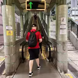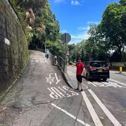 The last escalator should bring you up to conduit road (see pictures). At this point you have a choice, go left and take the tram up to the top or turn right and continue your hike.