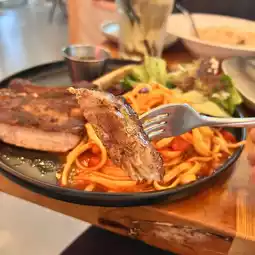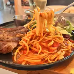 The portion is plentiful, the grain-fed ax pork is soft and smooth, the meat is rich in juice, and the taste is good. The pasta is made with rich tomato sauce, and the flavor is just right