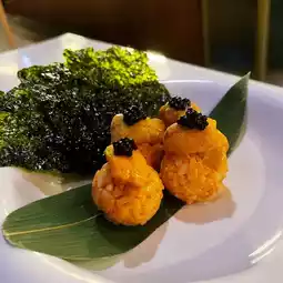 ๐ Another starter is "Pola Seaweed Ming Da Zi Cheese on Rice Ball", first of all, the shape is very cute, seaweed freshness full, added mint cheese and kimchi, a little spicy, a lot of delicious.