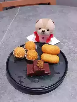 The dessert has an attractive shape, creating a fairyland of flying clouds. It contains three desserts, including: red bean jelly, lava coconut milk balls and brown sugar rice cake. Each dessert comes with three pieces, so you can share with your friends.