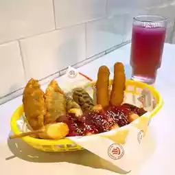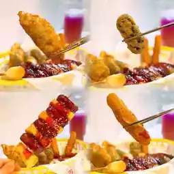 😋 In addition, the "Signature Fried Food Platter" has four different fried items, namely "Year Cake Sausage Skewers", "Fried Vegetable Vermicelli Roll", "Korean Dumplings" and "Fried Sweet Potato Cheese Strips". Among them, the "year cake sausage skewers" are very elastic and have a slight sweetness. The "Fried Vermicelli Roll" and "Korean Dumplings" contain some pork and vegetables, which are crispy and the dumplings are not too thick. The "Fried Sweet Potato Cheese Strips" are very chewy, with some sweetness and rich cheese.