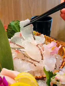 The sashimi platter with the help of the master includes the then-delicate Mikan sturgeon, as well as the deep-sea pond fish, jumbo scallops, oysters and swordfish fillets. Mikan bream is fed with tangerine peel, so it has a faint citrus aroma, and can also be eaten with vinegar or wasabi. The master's knife skills are excellent. He cuts a thin slice until it's crystal clear.