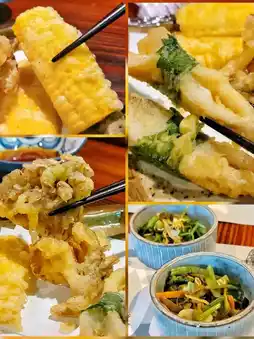 Ordered 3 kinds of tempura. The tempura is fried crispy and not greasy, the sand chasing fish is soft and tender, and the corn is sweet enough.