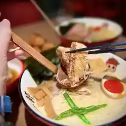 👍🏻 There are many Bearbrick collections in the restaurant for customers to enjoy, and there are seats where you can eat against the bearbrick. In addition, you can participate in the twist egg draw with a purchase of $100, and you can eat a bowl of free ramen!