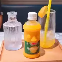 Originating from Jeju Island, tangerine juice plus ready-made soda water, the bottle alone has a lovely Jeju Island stone grandfather, drink with a little fizz and citrus aroma, has a digestive effect