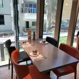 The restaurant is neatly and brightly decorated, the wallpaper has an American comic book style, and there is plenty of natural lighting by the window