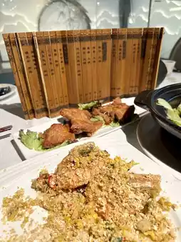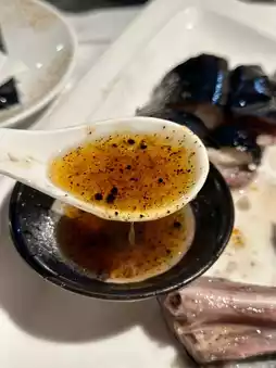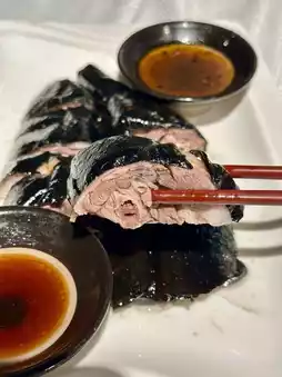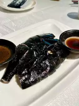 The dish that my colleague highly recommended lived up to its reputation, the roast goose skin was dark but shiny and glossy! Don't think it's charcoal-blackened. The goose skin is thin and crispy, with a little fat attached. Dip it in black truffle plum sauce, which has a sour and sweet taste mixed with the aroma of goose fat. The meat is tender and moist, and it's really delicious! What a surprise!