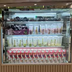 The shop focuses on fresh fruit tea and drinks made with Meiji milk