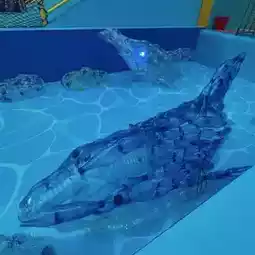 The 2-meter-long environmentally friendly great white shark and hammerhead shark made from over 1,000 recycled plastic bottles are also on display.