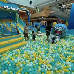 The GREEN Shark Beach Play Camp has a 3.5-meter-high giant inflatable Mr. Shark MR.SHARK, a 7-meter-high ocean slide and a ball pool for a colorful "wave bath"