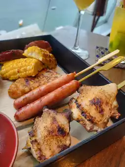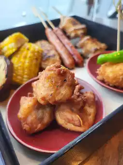 ✨Hot dishes ~ Karaage fried chicken, fried crab cakes, grilled Miyazaki Kurobuta sausage, grilled chicken wings, grilled wild vegetable fish cakes, grilled corn, grilled Miyazaki sweet potatoes! All are of high quality, the fried chicken is crispy and juicy, the crab cakes have a strong creamy flavor, the pork sausage is one of my favorites, the grilled chicken wings are crispy on the outside but not dry, all are superb!
