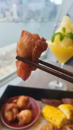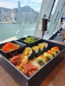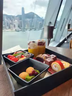 The restaurant is located on the 28th floor, with a full view of Victoria Harbour and floor-to-ceiling windows. The view is beautiful both day and night! The endless blue sky and white clouds, looking at the helicopter taking off and landing, the sea with countless ships, ferries, sailboats, the Avenue of Stars and the clock tower, the view alone is worth the ticket price!