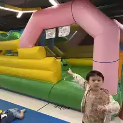 My brother prefers to wander around the two-meter-high climbing wall 🧗🏻♀️ and inflatable bouncy bed.