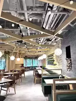 The decoration is mainly wooden, and there is a swing near the door. It's great for taking pictures!
