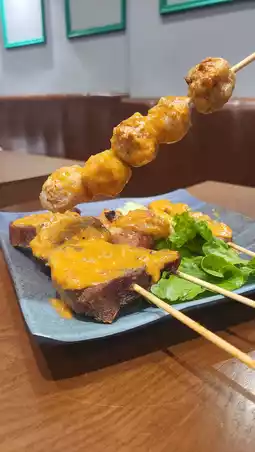 ✨Grilled pineapple $13/skewer, Thai pork meatball skewers $16/skewer, grilled ox tongue skewers $26/skewer, wagyu skewers $28/skewer, BBQ chicken wing skewers $18/skewer ~ The skewers are very good, and the most surprising one is the pork meatballs, which are handmade pork meatballs with pig skin inside, very authentic!