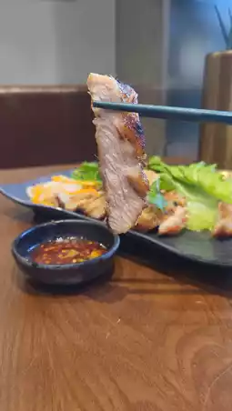 ✨Thai-style grilled pork neck $68 ~ Refreshing and smooth, not greasy, dipped in the homemade spicy sauce, appetizing!