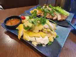 My mom loves Hainanese chicken. A friend recommended a Thai restaurant in Yuen Long. The Hainanese chicken is super high quality. Of course I have to try it!