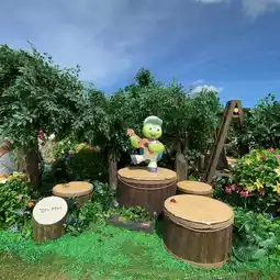 In addition to the 3rd floor, there are also point photo spots located on the rooftop of the maritime viewpoint. There is a beautiful Duffy and friends forest world, 10 meters wide grassland to restore the entire spring series story scene 1:1, Duffy in the forest wandering, accidentally saved a stunned little yellow bird; Mel excitedly danced and started singing with a ukulele; food expert Cookie Ann concocted a series of sweet little dim sum to entertain everyone.