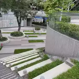 Several stairs and a pedestrian suspension bridge were added to the platform to connect to the existing network of pedestrian overpasses in the area, making the park accessible in all directions. The inverted cone skylights in the West Point Garden not only help with ventilation and introduce daylight illumination, but also bring the outdoor environment indoors to increase the sense of space.