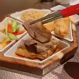 Stewed goose slices x stuffed tofu: thinly sliced goose slices