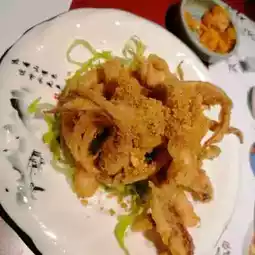 The squid beards are fried to a crispy texture, worth a try.