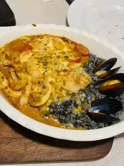 🌸Seafood Cuttlefish Rice🦑 The fish flavor and freshness of this dish are very prominent🌊🍚The rice is bouncy, the taste of squid sauce brings a deep seafood flavor, paired with rich seafood, the taste is more prominent, it is definitely an excellent choice for seafood lovers👌🖤