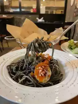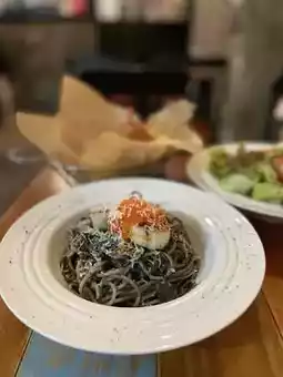 The scallops are fresh and big. The crab meat and crab roe are mixed into the squid ink spaghetti. You can taste the refreshing taste of the crab roe in every bite. The spaghetti is refreshing and chewy without being too sticky.