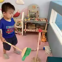 After playing in the sand pool 🏖️, the children can also be a cleaner 🧹, helping to sweep the sand, the piggy buns are sweeping very hard, playing very immersed🤭.