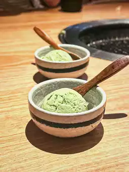 Finally, the ice cream is served, smooth and pistachio flavor, very filling🥰