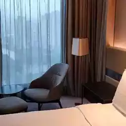 My partner and I were greeted by the high-ceiling modern lobby with the impressive spiral staircase. The room was impressively new, neat and hygienic and spacious enough to accommodate a chair with footrest.