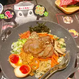 The bowl has a lot of side dishes. In addition to the grilled ox tongue as the main dish, it is also paired with soft-boiled eggs, bean sprouts, kimchi, carrots, mushrooms, etc., which are mixed with rice and eaten, and the taste is super rich.