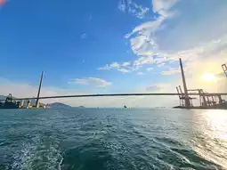 Hong Kong's Victoria Harbor is beautiful, but I've seen it many times 🤣, this journey is of course not just as simple as visiting the Victoria Harbor 😜, this route will first pass through the Ang Chun Chau Bridge 🌉 enter the Blue Barrier Strait, then bypass the north of Tsing Yi to Ting Kau Bridge 🌉, finally through the Tsing Ma Bridge 🌉 into the Ma Wan Strait before the return, from the bottom of the bridge looking back up the Ang Chun Chau Bridge is really shocking 🤩, the whole two hours to travel most of Hong Kong, even if not a tourist feel this trip is really very enjoyable 🤤