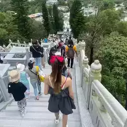 Climb up to the platform and overlook the beautiful scenery of Lantau Island and the South China Sea.