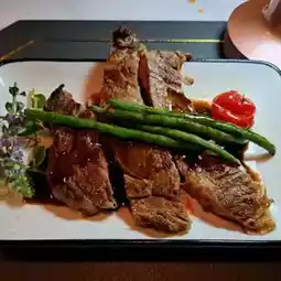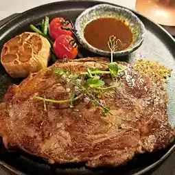 The restaurant offers one of four main dishes to choose from, we chose the grilled American ribeye steak with red wine sauce ($488), we chose five percent cooked🎊
