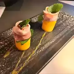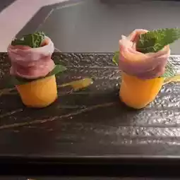 The restaurant offers four appetizers to choose from, we chose mint Italian ham with honeydew 👍 I started from the top mint Italian ham, eat very fragrant mint flavor, very Fresh, very suitable with Italian ham, the bottom is two large honeydew, very fresh 💕