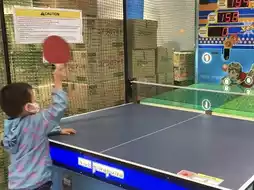 After a round of rides 🎡, it's time to switch to game consoles 🎮😎. There are many choices for bouncing ball🔴, throwing ball 🎾, catching alligator 🐊, water push boat 🚤, wind blowing ball machine 🌪️, etc. But when it comes to the most special thing must be the table tennis machine 🏓😱, table tennis balls will keep spraying out from both sides, really receiving the ball without stopping 😆, piggy buns are sweating after playing 💦, said super fun 🤣