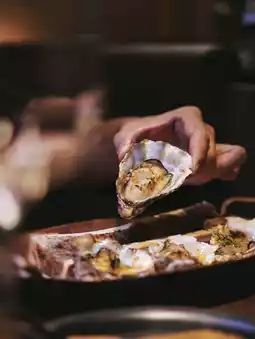 This main is very attractive both in taste and appearance! Beef bone marrow and baked oysters are grilled with vanilla butter
