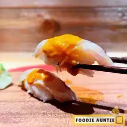 👁 Another very special specialty delicacy is "Akata Sushi", which is made very seriously. First, marinate the red catfish wrapped in kombu for 7 hours, then slowly cook at low heat until half-cooked to enhance the freshness. Finally, the surface is grilled with cherry wood with special sauce, retaining the freshness of the seaweed and the richness of the fish eye, full of collagen, one bite, freshness burst!