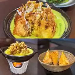 The soft shell crab is fried crispy and very crab flavor, served with green curry sauce, the taste is very good 💚 The portion of soft shell crab is not small, each has a bite of meat 🤩 Thick garlic bread is delicious! Crispy and fluffy, it goes perfectly with curry sauce! This dish is also a filling and affordable choice 🤣