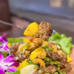 The beef fillet is moderate in size, not very tough, and quite fresh 😋 Mango beef This combination is quite special, mango eats sweet and juicy, so that the beef fillet is fresh, will not feel very greasy 😍 Add onions, cashews, the whole combination is very rich ~