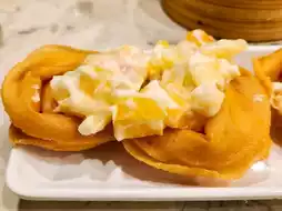 The filling on the outside of the wonton is crispy and the shrimp meat inside is super tender! The mixed fruit salad is also very delicious.