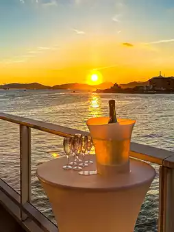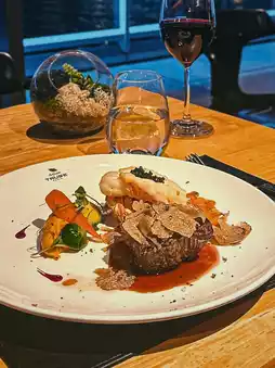 The restaurant focuses on French cuisine and features truffles, which are exquisite and refined. The environment of the shop is comfortable and elegant, diners can enjoy the view of the Victoria Harbor through the large floor-to-ceiling glass, the terrace also offers free champagne free pour, diners can drink while chilling to watch the sunset or night view, the atmosphere and photography is excellent😌