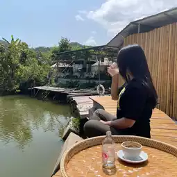 Once you enter, you will see the big fish pond, mountains and rivers, the feeling of being close to nature, there are tables and chairs in front of the fish pond, sitting there while eating while enjoying the environment of nature, very chill!