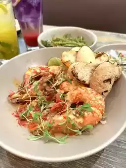 The shrimp is bigger than my palm 🤚🏼 The shrimp meat is crispy and bouncy
