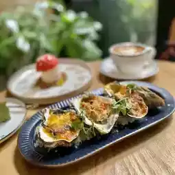 Baked oysters come in two pieces each: cheese spinach & garlic flavor