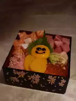 This donburi looks so cute and is topped with four ingredients that bring a different mouthfeel and flavor to each bite. These include salmon roe, salmon pellets, tuna puree and tuna pellets. The salmon roe provides a subtle freshness with a bouncy and savory mouthfeel that adds a rich layering. Delicious tuna chunks and salmon chunks are soft in texture. The tuna puree with a rich aroma and fluffy texture blends into the rice with a rich mouthfeel and flavor.
