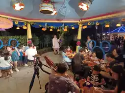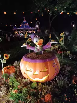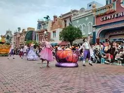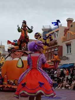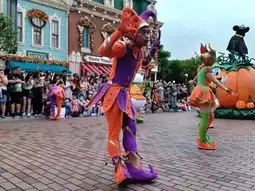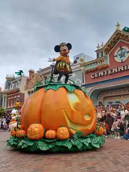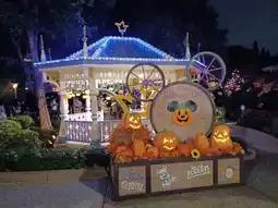 Mickey and his friends dressed up in Halloween costumes and sang and danced with everyone on the streets of the town. This is the second performance every day.