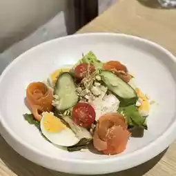 The ingredients are rich, in addition to smoked salmon, there are boiled eggs, cucumbers, cherry tomatoes, salad vegetables, etc., with the sweet and sour black vinegar sauce, very refreshing