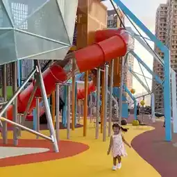 Dino Park is the largest dinosaur-themed outdoor playground in Hong Kong with 14 play facilities, including ziplines, ropes, slides and more!