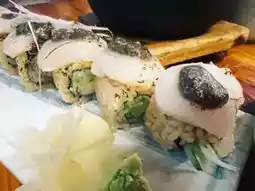The crab paste goes well with the sashimi, and the sushi rice wrapped in avocado is my favorite.